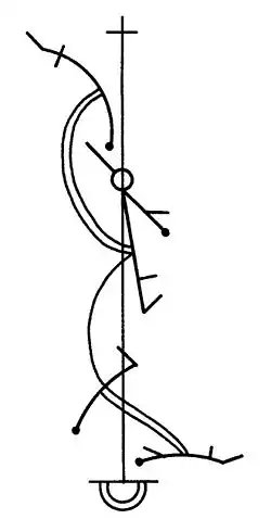 Každý tanec je zaznamenán na několik listů papírů, čelo sálu je na vrchní stránce strany, a následně vpravo a vlevo jsou jeho pravé a levé části z pohledu čtenáře. Rozlišuje symbol pro muže (linku s jedním obloučkem) a pro ženu (linku s dvěma obloučky). Notace rozlišuje 10 různých pozic pro nohy, z nichž je pět špatných a pět pravých.[p 1][2]