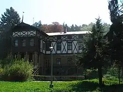 - Další památka je pseudorenesanční vila Augustina Švagrovského (vila Švagrovských) s hrázděným patrem, kterou vybudoval Jan Zeyer, bratr básníka Julia Zeyera. Také zde často pobýval Jan Neruda, který zde psal fejetony a napsal tu sbírku Písně kosmické (trávil čas na bechlínské hvězdárně).[13]