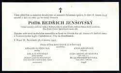 - ↑ PhDr. Bedřich Jenšovský (Narozen 24.9.1889 v Praze, popraven 12.2.1942 v koncentračním táboře Osvětim) [online]. Moravská zemská knihovna (knihovny cz) [cit. 2023-10-10]. Ředitel zemského archivu v Praze, historik, editor sbírek dokumentů, práce v oboru.. Dostupné online.