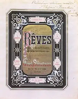 Vedle toho se Smetana vrátil ke klavírní tvorbě. Cyklus šesti lisztovských skladeb Rêves (Sny) složil v létě 1875 a podělil jimi z vděčnosti své bývalé šlechtické žačky, které jej navštěvovaly a podporovaly v obtížné době.[224] Pozdější dva cykly Českých tanců (1877, 1879) vznikly vědomě jako pendant a současně protipól Dvořákových Slovanských tanců, kterými Smetanův mladší současník razantně pronikl na mezinárodní scénu.[225]