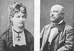 První rok ve Švédsku strávil Smetana bez rodiny; tehdy navázal dlouholeté přátelství s Fröjdou Beneckovou (roz. Gumpertová, později Rubensová).[75] V létě obvykle navštěvoval Čechy a na druhou sezónu se vrátil na sever s manželkou.[70] Kateřina Smetanová však trpěla depresemi i fyzickou nemocí.[76] V dubnu 1859, při předčasném návratu do Prahy, zemřela cestou v Drážďanech.[77][78] Léto toho roku trávil Smetana v Chloumku u svého bratra Karla a blíže se seznámil s jeho švagrovou Barborou (Betty) Ferdinandiovou (10. listopadu 1840 Černé Budy – 14. prosince 1908 Luhačovice). Požádal ji o ruku a o rok později, 10. července 1860, se s ní oženil.[79] V mezidobí, v prosinci 1859, vznikla jako dárek pro snoubenku Bettina polka.[80] Brzy se však ukázalo, že manželství bylo omylem: Betty necítila k více než o šestnáct let staršímu skladateli lásku, nepřitahoval ji a neměla porozumění pro jeho talent ani temperament; od poloviny šedesátých let žili již z větší části odděleně. Zejména později v době nemoci Smetana odcizením a nezájmem své ženy velmi trpěl.[81][82] Z manželství se narodily dvě dcery, Zdeňka (25. září 1861) a Božena (19. února 1863).[83] Smetana si podržel nejužší vztah ke své dceři z prvního manželství Žofii, od 3. ledna 1874 provdané za lesníka Josefa Schwarze.[84]