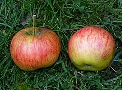 Plod je kulovitý, střední až velký. Slupka hladká, žluté zbarvení je překryté červeným líčkem a žíháním. Dužnina je nažloutlá, jemná, šťavnatá se sladce navinulou aromatickou chutí, velmi dobrá, na vzduchu po rozkrojení hnědne.[1]
