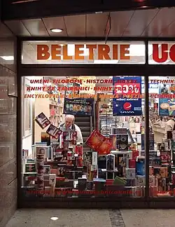 Výkladní skříň oddělení beletrie v pražském knihkupectví