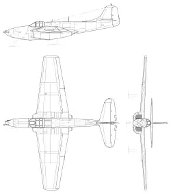 - Pohonná jednotka: 2× proudový motor General Electric J31-GE-5 každý o tahu 2 000 lbf (8,9 kN)
