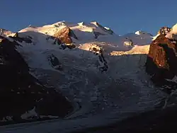 Z hřebene Bellavisty stéká ledovec Morteratsch údolím směrem na sever. Jižně orientovaný ledovec Altipiano di Fellaria tvoří v horní části mělkou kotlinu, která sahá téměř k vrcholkům Bellavisty.