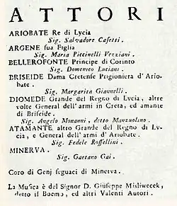 | Ariobates (Ariobate), král Lýkie | tenor | Anton Raaff |