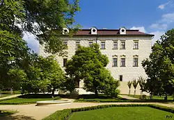 - Kostel Narození Panny Marie – spojený se zámkem, původně klášterní[23][24]