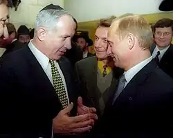 בנימין נתניהו, Binjamin Netanjahu; * 21. října 1949 Tel Aviv), známý pod přezdívkou Bibi,[2] je izraelský politik, od prosince 2022 předseda vlády Izraele. Tuto funkci zastával také v letech 1996–1999 a 2009–2021.[3] Od roku 2005 vykonává funkci předsedy strany Likud. Je nejdéle sloužícím předsedou vlády v dějinách země, funkci vykonává přes 16 let. Mimo jiné se stal prvním předsedou vlády, který se narodil v Izraeli po vyhlášení jeho nezávislosti.[4][5]
