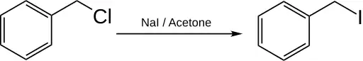 Benzyljodid je možné připravit Finkelsteinovou reakcí z benzylchloridu a jodidu sodného v acetonu.