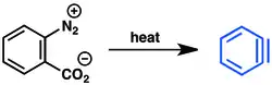Pomocí hexadehydro Dielsovy–Alderovy reakce (cykloadiční reakce 1,3-diynu s alkynem) lze také získat benzyn.[11]