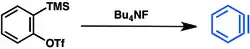 Jako výchozí látky lze také použít trimethylsilylaryltrifláty.[10] Odštěpení fluoridu z trifluormethylsulfonové akupiny vede k eliminaci triflátu a vzniku benzynu: