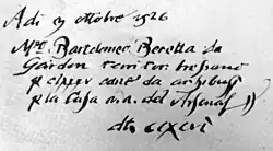 V polovině 16. století bylo v údolí Val Trompia padesát dolů na železo, olovo a měď, osm hutí a čtyřicet kováren. Produktem bylo běžné nářadí, ale i všechny součástí palných zbraní od pružinek bicího ústrojí až po děla.[1] V této konkurenci se 3. října roku 1526 podařilo vyniknout majiteli dílny v Gardone Val Trompia, Bartolomeu Berettovi, když se mu podařilo získat smlouvu s Benátským arzenálem na dodávku 185 hlavní arkebuz za obnos 296 dukátů. Kovárny rodu Beretta byly založeny před rokem 1500 a Bartolomeo Beretta nebyl prvním mistrem dílny, ale datum smlouvy s benátskými dóžaty je považováno za založení dílny a značky Beretta a Bartolomeo Beretta za jejího zakladatele.