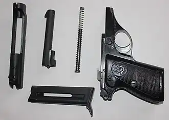 ![]() Beretta 71 z roku 1983 ( knoflíkový záchyt zásobníku ) | |