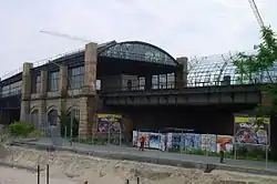![]() Pohled na nádraží s příčnými mostovými budovami | |