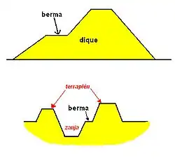 - ↑ Berm [online]. Online Etymology Dictionary [cit. 2007-06-26]. Dostupné online. (anglicky)