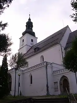 - Římskokatolický farní kostel sv. Petra a Pavla (původně zasvěcen P. Marii). Jádro budovy a portál je v přechodném románsko-gotickém slohu ze 3. čtvrtiny 13. století, vzhled kostela však byl vícekrát změněn, zejména přístavbou barokní věže v letech 1711-1712 a kaple sv. Hedviky a vstupní haly roku 1871. V kostele se nachází renesanční epitaf Bartoloměje Oerta z roku 1571 a náhrobek faráře Adama Merkela z doby po roce 1600. Kulturní památka.[20][21]