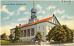 - Collegium musicum byl prvním orchestrem na americké půdě, který seznámil Ameriku s vážnou hudbou.[4] Sborový dům Moravských bratří „indiáni nevyplenili, protože byli přesvědčeni, že ve srubu, z něhož se ozývají tak krásné písně, nemůže přebývat než dobrý Duch.“[4] V hudební tradici pokračuje pěvecký soubor The Bach Choir of Bethlehem.