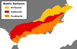 Rozkládá se od pobřeží Atlantského oceánu v okolí města Cádiz až k mysu Cabo de la Nao při pobřeží Středozemního moře v blízkosti Valencie. Je rovněž složena z druhohorních a třetihorních sedimentů.
