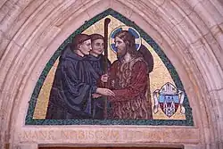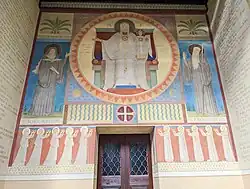 - ↑ Kolektiv autorů. Oblouk u apsidy, apsida, východní strana presbytáře. In: Schéma nástěnných maleb a nápisů v kostele sv. Gabriela v Praze. Vydala Společnost přátel beuronského umění, Praha, 2002. Str. 12-13.