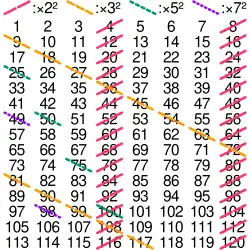 - Celé číslo n je bezčtvercové právě tehdy, když se v jeho prvočíselném rozkladu vyskytuje každé prvočíslo nejvýše jednou. Jinými slovy, pokud pro každého dělitele p čísla n platí, že p nedělí n/p.