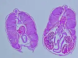 - ↑ HOLLAND, Nicholas D.; CAMPBELL, Terry G.; GAREY, James R. The Florida amphioxus (Cephalochordata) hosts larvae of the tapeworm Acanthobothrium brevissime: natural history, anatomy and taxonomic identification of the parasite. Acta Zoologica. 2009, roč. 90, čís. 1, s. 75–86. Dostupné online [cit. 2025-03-26]. ISSN 1463-6395. doi:10.1111/j.1463-6395.2008.00343.x. (anglicky)
