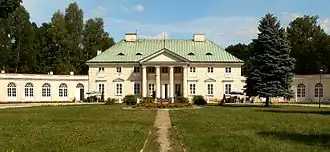 - Klasicistní zámecký areál – vybudován v letech 1797–1800 z iniciativy Stanisława Małachowského. Tvořen je hlavní budovou propojenou čtvrtkruhovými galeriemi s vedlejšími objekty, dvěma pavilony a parkem. V zámeckém parku se nacházejí romantizující pseudostředověké zříceniny a oranžérie navržená architektem Franciszkiem Mariou Lancim. Park se vyznačuje bohatou dendrologickou skladbou, včetně tulipánovníků. V současnosti objekt slouží jako sídlo místního domova sociální péče. V 80. letech 20. století prošly zámecké budovy rozsáhlou rekonstrukcí, která jim navrátila původní reprezentativní vzhled; velkou zásluhu na přestavbě měla tehdejší ředitelka zařízení, Mgr. Waleria Barbara Budzyńská.