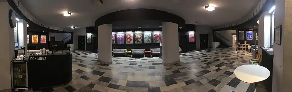 Kino má celkem tři promítací prostory, klasický velký sál (384 míst), pro menší projekce malý sál (27 míst) a videokavárnu pro přednášky (35 míst).[2] V kině se nachází také bar s betonovou zahrádkou.