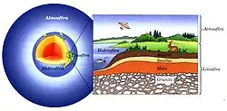 - Ekosféra – část planety Země s pravidelným a zákonitým výskytem života (do 5–8 km v atmosféře, v oceánech a litosféře je její hranice stejná jako u biosféry, případně u litosféry je trochu blíže povrchu),