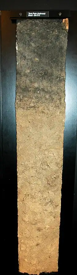 Domorodí obyvatelé Amazonie ještě před příchodem Kryštofa Kolumba vyráběli biouhel neúplným spalováním zemědělského odpadu (tj. zasypáním už jen doutnající biomasy půdou)[4] v jámách nebo příkopech[5]. Není známo, zda záměrně používali biouhel ke zvýšení produktivity půdy[5], nicméně takto dávno vytvořená půda, která obsahuje značné množství biouhlu a na něj navázaných živin, je dodnes stále vysoce úrodná a nevykazuje vyčerpanost ani několik let po odlesnění, na rozdíl od půd přírodních, které se po odlesnění záhy promění na neúrodný písek[3][6]. Tyto půdy, vytvořené původními indiánskými kmeny, jsou staré přes tisíc let a jsou bohaté na biouhel, hliněnou keramiku, organickou hmotu a život[7] Nejvíce se jich nachází v Amazonii, kde se nazývají terra preta de Indio (portugalsky černá země), ale nalezneme takové antropogenní půdy i v Západní Africe či v savanách Severní Afriky[8].