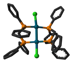 Tyčinkový model struktury komplexu [Pd2Cl2(dppm)2][5]