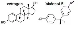 Roku 2002 Stockholmská úmluva zařadila mezi "dirty dozen" také bisfenolům příbuzné polychlorované bifenyly, které mají podobné toxické efekty.