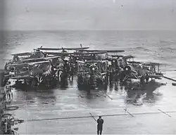 Zatím se lodě admirála Curteise s letadlovou lodí Victorious k pozici Bismarcka přibližovaly, ale v 10 hodin večer byl ještě ve vzdálenosti 120 mil od pozice německých lodí. Aby bombardéry stihly zaútočit ještě před setměním (západ slunce byl na daných souřadnicích 50 minut po půlnoci) a protože se zhoršovalo počasí, rozhodl se velitel Victorious kapitán Bovell uskutečnit útok již z této vzdálenosti. Pod velením komandéra Eugena Esmonda odstartovalo devět letounů typu Fairey Swordfish a dva typu Fairey Fulmar. Bohužel však piloti po přeletu Wake-Walkerových lodí omylem téměř zahájili útok na plavidlo americké pobřežní stráže USCGC Modoc o jehož přítomnosti nebylo Britům nic známo a jejich omyl na můstku Bismarcka zaznamenali. Německá loď tak byla varována a měla čas se na letecký útok připravit. Přes velké úsilí britských letců se nakonec podařilo zaznamenat pouze zásah torpédem doprostřed lodi, chromniklová ocel však vydržela a Bismarcku tak nebyla způsobena žádná patrná škoda. Při útoku však v důsledku exploze zemřel první člen posádky.[8] Byl jím Oberbootsmann Kurt Kirchberg, kterého výbuch odhodil na letecký katapult.