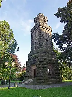 - „Bismarckturm, erbaut aus der Stiftung des Herrn Commerzienrat Julius Hoffmann vom Naturwissenschaftlichen Verein im Jahre 1904“
