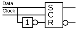 Pokud je vstup Clk vybaven detekcí náběžné hrany, zapamatuje se stav vstupu Data v okamžiku náběžné hrany.