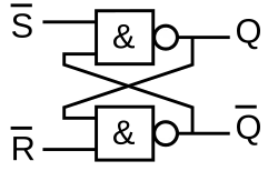 Pojem zakázaný stav pochází z doby, kdy byl tento obvod realizován dvěma invertory, u kterých nebyl eliminován zpětný přenos přes jednotlivé tranzistory. Současné buzení obou vstupů vedlo k tomu, že se výstupní veličiny dostávaly do zakázaného pásma a tranzistory přecházely ze saturace do aktivní zóny svých charakteristik.