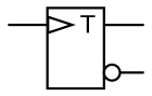 Obvod T je přepínač paměti. S každou náběžnou hranou dojde ke změně výstupního stavu na inverzní k předchozí. V principu se jedná o děličku frekvence hodnotou 2 (fout = fin / 2).