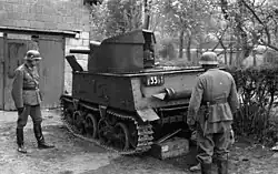 Opuštěný belgický stíhač tanků T-13 zkoumaný německými vojáky