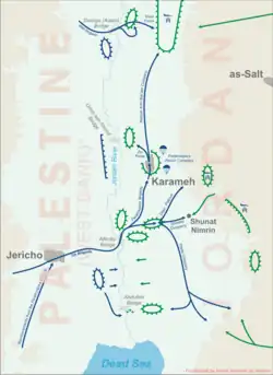 Po překročení Allenbyho mostu se 7. brigáda po dosažení Šuny rozdělila na tři směry: první skupina pokračovala směrem na sever, kde měla za úkol odříznout jordánským jednotkám přístup ke Karamé. Druhá skupina (pěchotní a tankový prapor) pokračovala východním směrem, aby zablokovala postup dalším jordánským jednotkám. Třetí skupina o síle jednoho praporu pěchoty zamířila na jih, aby pomohla izraelským jednotkám pokoušejícím se prolomit jordánskou obranu Abdullahova mostu.