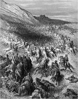 ![]() Bitva u Hattínu, Chronica Majora, Matthew Paris, 13. století | |||