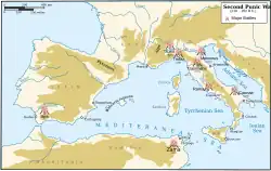 Římané poté zvolili velitelem vojska v Hispánii Publia Cornelia Scipiona, syna stejnojmenného, nedávno zemřelého vojevůdce.[6] Scipio se brzy po svém příchodu zmocnil nečekaným výpadem Nového Kartága (Cartagena), hlavní punské základny a přístavu v Hispánii.[7] V roce 208 př. n. l. zvítězil nad Hasdrubalem Barkou v bitvě u Baeculy.[8] Poražený kartaginský velitel nicméně vyvázl z boje a s částí svého vojska se odebral za Hannibalem do Itálie.[9]