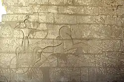 ![]() Reliéf v chrámu v Abú Simbel s Ramessem porážejícím chetitské bojovníky u Kadeše | |||