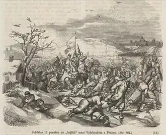 Sešikovaná vojska soupeřů již z dálky jeho vojsko viděla přicházet a za hlaholu zvonů jej očekávala. Na pláni východně od tehdejší Prahy (dnes na Novém Městě, poblíž tehdejší vsi Nusle) se pak odehrála rozhodná bitva – avšak s opačným výsledkem.