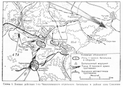 Dne 8. března 1943 v 11.00 hod. německého času, tedy asi ve 13.00 hod času moskevského zahájily jednotky 1. praporu pluku tankových granátníků 4 a motocyklový oddíl 6 postup na Sokolovo. Silná obranná palba 1. čs. praporu ze Sokolova a severního břehu Mži však donutila útočníky zastavit útok a stáhnout se zpět. Intenzita obranné palby totiž předčila německé očekávání. Zde je rozpor v čase útoku, který české prameny uvádějí v 13.30 hod. a tvrzení, že se jednalo o průzkum bojem, při kterém měly tři tanky zůstat na bojišti jako léčka a pomocí dýmovnic předstírat zničení a zaměřit se na čs. protitankové zbraně. Na základě svědectví lze rozhodně vyloučit, že se jednalo pouze o průzkum bojem.