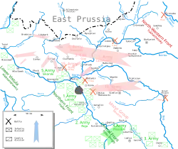 Generál Tuchačevskij plánoval obklíčit Varšavu překročením Visly poblíž Włocławku a zahájit hlavní útok ze severozápadu. S dvaceti čtyřmi divizemi hodlal uskutečnit úspěšný plán maršála Ivana Paskeviče, který v roce 1831 překročil Vislu u Toruně a prakticky bez odporu vstoupil do Varšavy. Ukončil tak Listopadové povstání Poláků proti ruské nadvládě. Tuchačevskij si od plánu sliboval, že odřízne polskou armádu od přístavu Gdaňsk, který by mohl být eventuálně použit pro přísun dalších zásob a posil. Slabým místem plánu, jak polská tajná služba zjistila, byla chabě bráněná oblast styku mezi jihozápadní a západní armádou.