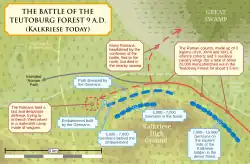 | Místo | Teutoburský les (u dnešní obce Kalkriese[1] poblíž Osnabrücku v Dolním Sasku) | ||