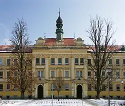 ZŠ J. A. Komenského sídlí v budově od architekta Karla Fialy, postavené v letech 1902–1904