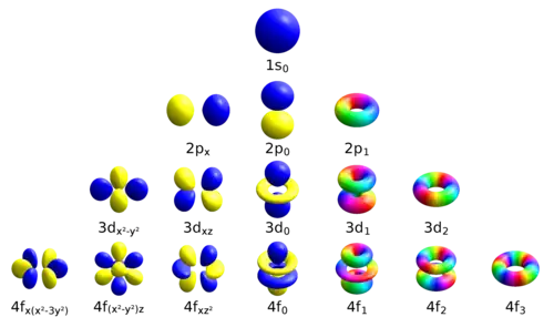 Názvy bloků (s, p, d a f) jsou odvozeny z hodnoty vedlejšího kvantového čísla (l), které vyjadřuje velikost momentu hybnosti a popisuje tvar orbitalu: