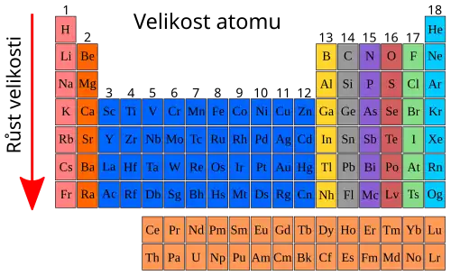 Blok s je na levé straně periodické tabulky (červený a žlutý sloupec, zeleně vodík) a jeden prvek vpravo (modře helium).