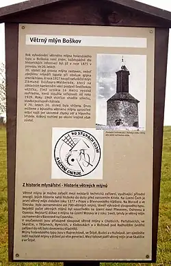 Za zmínku stojí i ruiny větrného mlýna na kopci cca 1 km jižně od vsi, kde se již nachází jen vyhlídka U jelena. Rok vybudování větrného mlýna holandského typu není znám, podle historických informací byl v provozu nejméně od roku 1875. V roce 1927 koupil nefunkční mlýn Zikmund Desfours-Walderode, který na základním kamenném válci postavil šestibokou věžičku, čímž vznikla 16 m vysoká rozhledna, která sloužila veřejnosti od roku 1929. Roku 1949 shodila střechu vichřice a stavba postupně chátrala. V 70. letech 20. století byla stržena a dnes zbyl z bývalého větrného mlýna jen val naznačující zbytky zdí. V 21. století zde byla postavena vyhlídka U jelena na jejímž vrcholu je plastika jelena vytvořená z ocelového plechu. Z místa je krásný rozhled po okolní krajině Nízkého Jeseníku, za dobrého počasí je vidět i vrchol Hrubého Jeseníku – Praděd, východním směrem lze vidět televizní vysílač u Veselí (okres Nový Jičín) a šest větrných elektráren.