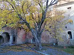 Uprostřed nádvoří lze nalézt starou studnu, čerpání vody z ní zajišťovalo čerpadlo poháněné větrem, tzv. „montor“.[27] Dále se pokračuje do novějšího renesančního křídla (v němž je zároveň vsazena hlavní brána). Toto křídlo, jak již bylo uvedeno v sekci historie výše, vzniklo přistavěním k původní tvrzi v linii původního příkopu, jehož zbytek byl následně zasypán.[27] Nalevo u zdi brány je strmé dřevěné schodiště, které od 16. století nahradilo původní vstup z věže. Po zdolání schodů se poté prochází úzkou chodbou lemovanou malými okny s výhledem do nádvoří kolem sedmi obytných místností.